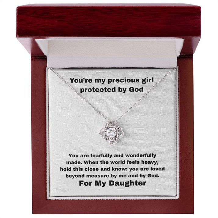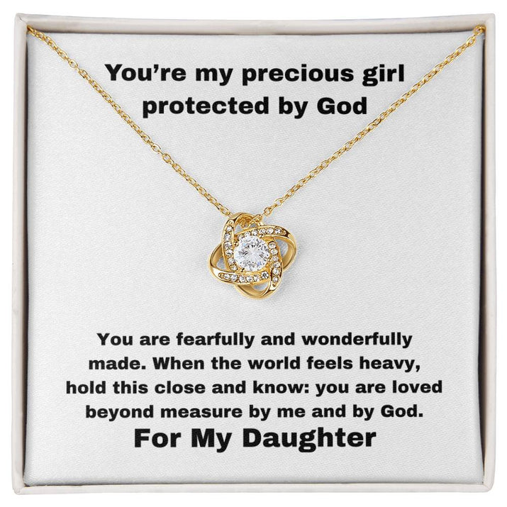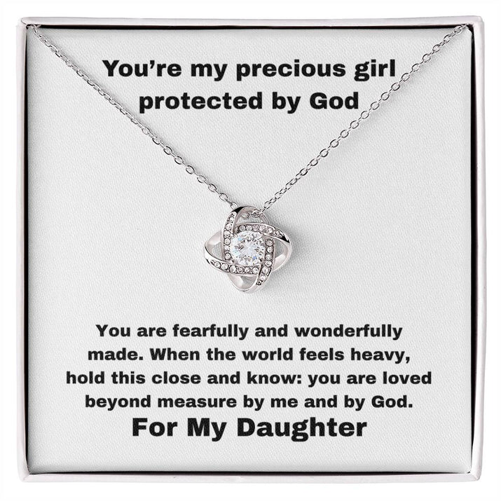 You’re my precious girl, protected by God. This Love Knot Necklace is more than a gift — it’s a reminder that she’s fearfully and wonderfully made (Psalm 139:14). Each time she wears it, she’ll feel your love and God’s presence close to her heart.